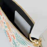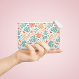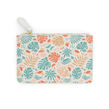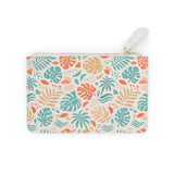 Mini Clutch Bag — Tropical Leaf Pattern Wristlet Pouch (Coral, Teal & Sand)