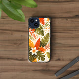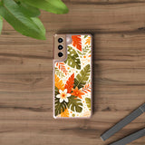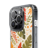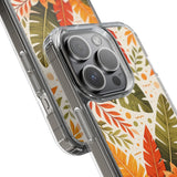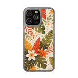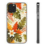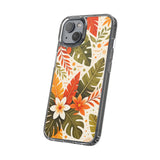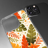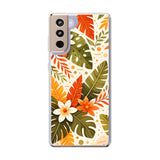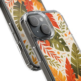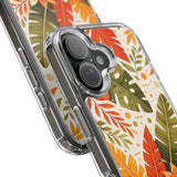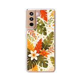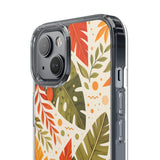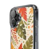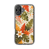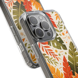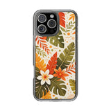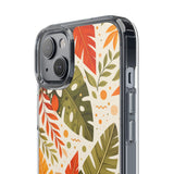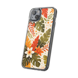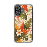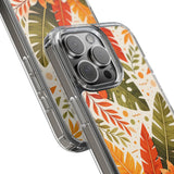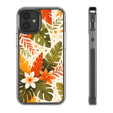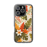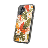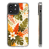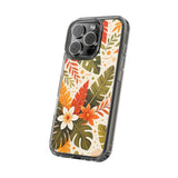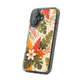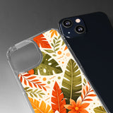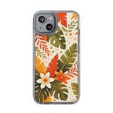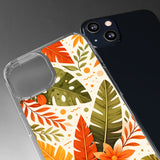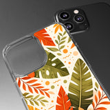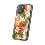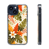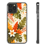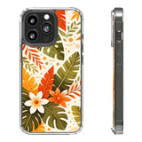 Tropical Fall Clear Phone Case — Orange & Olive Floral Leaf Design