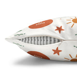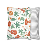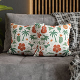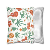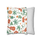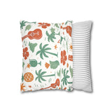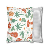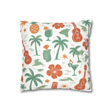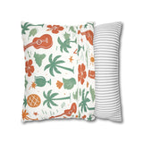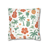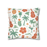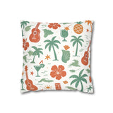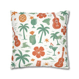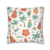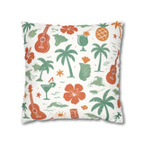 Bring a warm, sun-soaked breeze into your living space with this faux suede square pillowcase. Soft to the touch and thoughtfully printed on both sides, the cover features playful tropical motifs — palms, ukuleles, hibiscus blooms, and tiki cocktails — rendered in muted coral and sage tones on a creamy background. It layers beautifully on a couch, daybed, or porch bench, adding a relaxed island vibe without overpowering a room. The concealed beige zipper keeps the look seamless while making insert changes easy. Use an insert about 2" larger than the cover to achieve a plump, hotel-style finish.