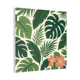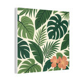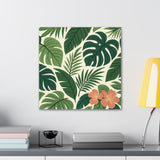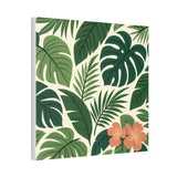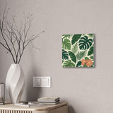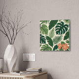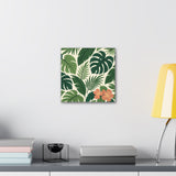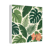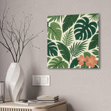 Bring a slice of lush, tropical calm into your home with this stretched canvas wall art. The dense, layered greens and a pop of coral hibiscus create a relaxed, botanical mood—like a quiet corner of a greenhouse or a short walk beneath broad palm fronds. The 0.75" pine stretcher gives a clean, gallery-ready profile that sits beautifully on living room, bedroom, or entryway walls. Lightweight yet substantial, it arrives ready to hang with hardware included and a small QR code on the back for care or provenance details. Available in multiple orientations and twenty sizes, it adapts easily to gallery walls, cozy nooks, or sunlit patios that need a fresh, nature-forward accent.