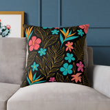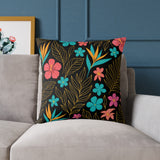 Floral Garden Throw Pillow – Bright Tropical Blooms Decorative Cushion