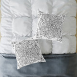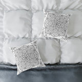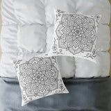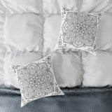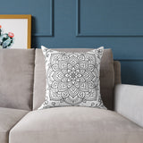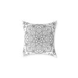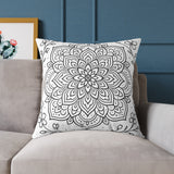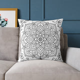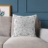 Mandala Floral Pillow - Black & White Decorative Square Throw Pillow
