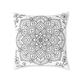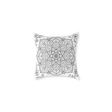 Sink into a quiet moment with this square poly canvas pillow. The soft, finely woven canvas carries a hand-drawn mandala that invites slow breaths and lingering stares. It sits low on the floor or leans against a sofa, adding calm geometry and subtle contrast without shouting. The double-sided print keeps the pattern consistent no matter how you flip it, while the concealed zipper keeps edges clean and the look uninterrupted. Bright, lasting inks keep the lines crisp through everyday use, and the sturdy polyester filling holds shape so the pillow stays plump where you need support. It’s the kind of accent that quietly organizes a reading nook, deepens a meditation corner, or brings a settled note to a living room spread during a housewarming or relaxed weekend gathering.