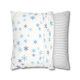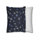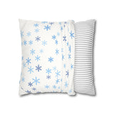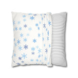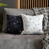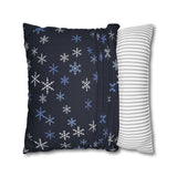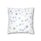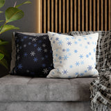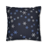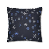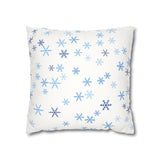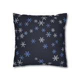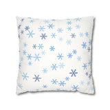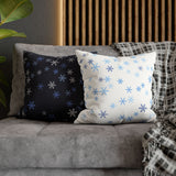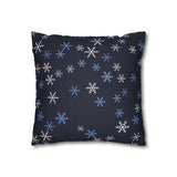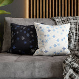 Winter Snowflake Faux Suede Pillowcase — Blue Snow Pattern Square Pillow Cover